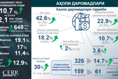 Аҳолининг реал даромадлари 10,7 фоизга кўпайди, бу аҳоли жон бошига ўртача ойига 2,1 млн сўмга тўғри келади. Иш ҳақи фуқаролар турмуш даражаси яхшиланишининг асосий омилларидан бири сифатида жами даромадларнинг 42,6 фоизини ташкил этди.