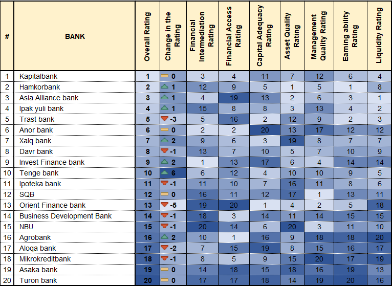 Management Efficiency. The highest positions were held by SQB, Orient Finance Bank and NBU. At the same time, Asaka Bank dropped by 5 positions, while BRB declined by 4 positions.