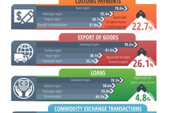 Customs revenues rose by 22.7%. The highest growth rates were observed in Navoi (78%) and Namangan (55.4%) regions.