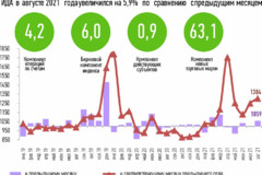 The component of operating economic entities in August 2021 amounted to 1.0085, which means an increase in the component by 0.9% compared to the level of the previous month. This indicator also has a positive value in relation to the same period last year with an increase of 14.2%.