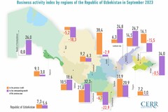 In September, the Business Activity Index for 11 regions increased compared to the previous month. In particular, Jizzakh (38.4%), Syrdarya (31.9%), Kashkadarya (21.6%), Namangan (16.1%), Tashkent (14.5%) and Bukhara (10.5%) regions experienced significant growth (Fig.2).