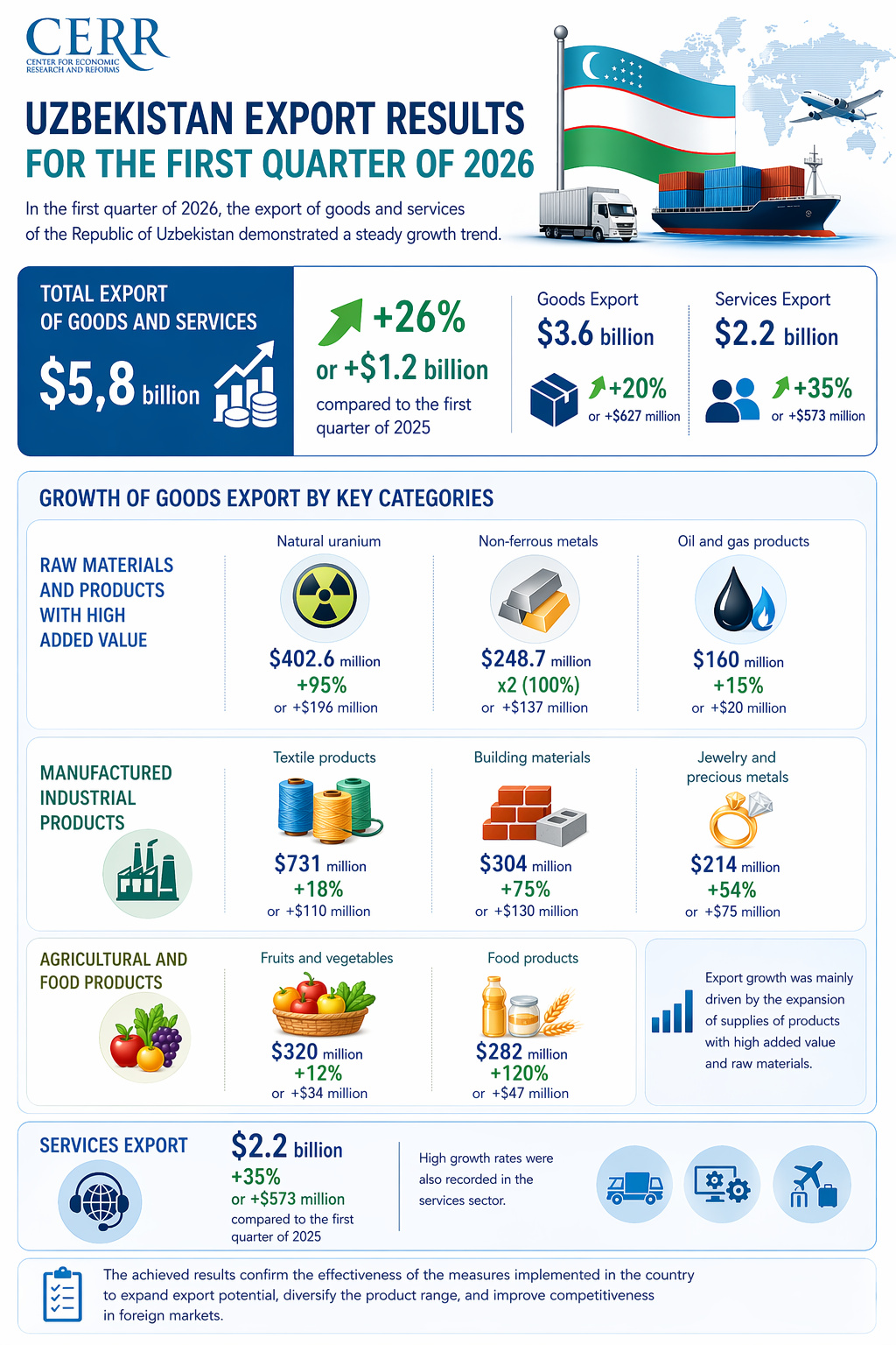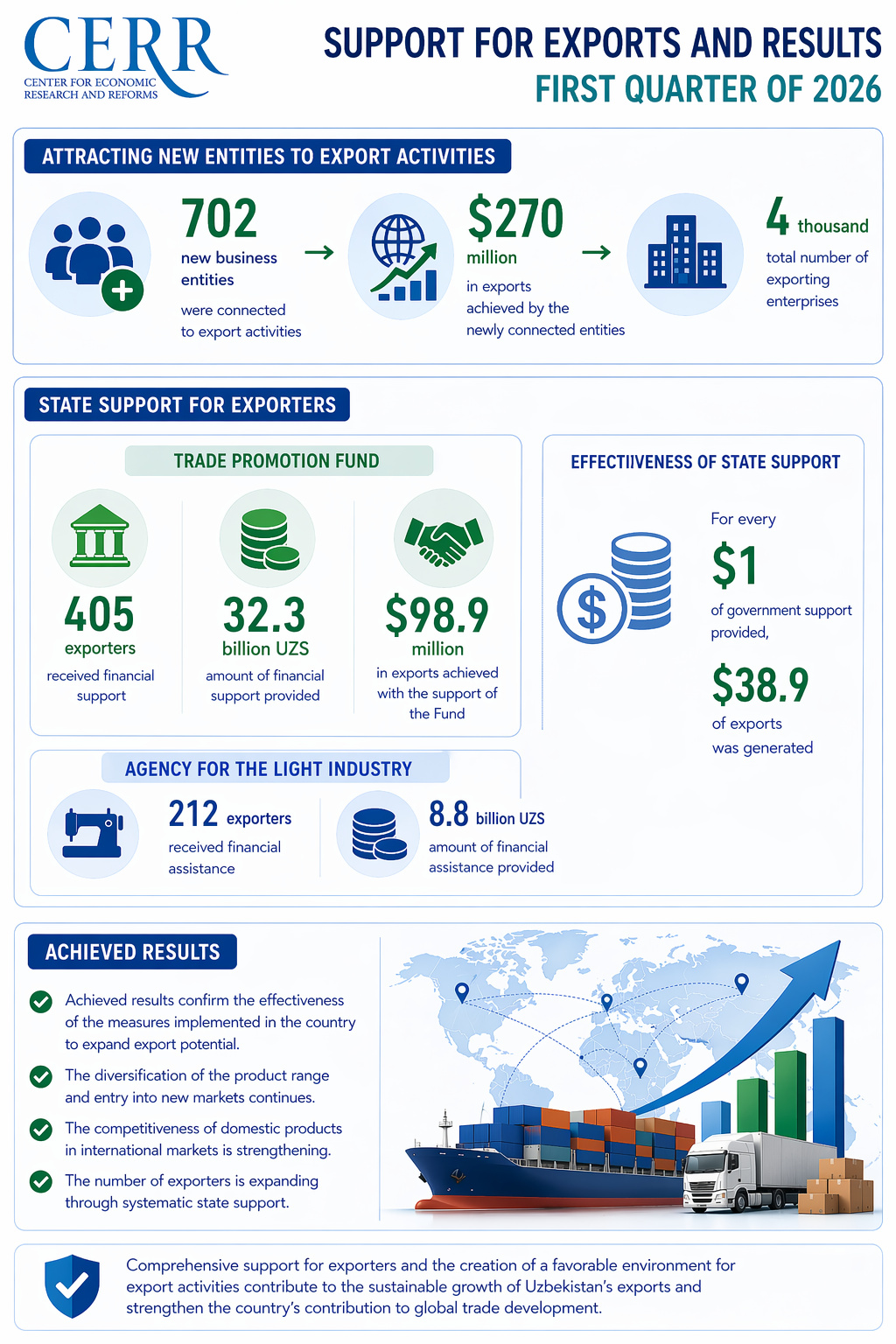 The achieved results confirm the effectiveness of the measures being implemented in the country to expand export potential, diversify the product range, and strengthen competitiveness in foreign markets.