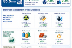 Export growth was driven primarily by the expansion of shipments of higher value-added products and raw materials. In particular, exports of natural uranium amounted to $402.6 mn, increasing by $196 mn, or 95%. Exports of non-ferrous metals reached $248.7 mn, up by $137 mn, with a twofold increase recorded. Exports of oil and gas products totaled $160 mn, rising by $20 mn, or 15%.