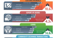 The decline in the colume of exports in these regions is mainly due to a reduction in exports of yarn, fruits and vegetables, mineral fertilizers and textile products. At the same time, a decrease in metal exports was noted to a greater extent in the Tashkent region, plastics and yarn in the Republic of Karakalpakstan, natural gas and metals in the capital.