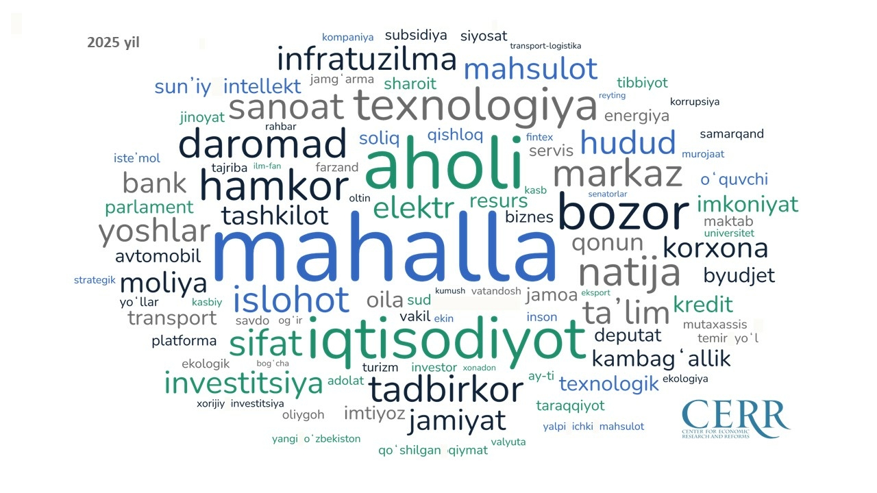 On 26 December 2025, President Shavkat Mirziyoyev delivered his Address to the Oliy Majlis and the people of Uzbekistan. Experts of the Center for Economic Research and Reforms (CERR) conducted a linguistic content analysis of the President’s speech.