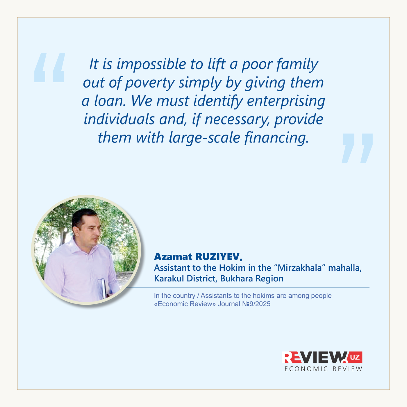 – When I started working in the Mirzaka’la Mahalla in 2022, the poverty rate stood at nearly 40%, or more precisely 38.5%. Our analysis showed that poverty stemmed not only from remoteness and lack of employment opportunities but also from a dependency mindset - the belief that the state would always provide support. Over the years, we have helped change this mindset while creating new jobs within the mahalla. As of September 1, 2025, the poverty rate has decreased to 6.1%.