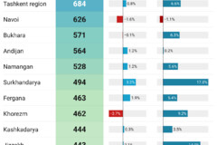 Regionally, the strongest year-on-year price growth was observed in Jizzakh (14%), Surkhandarya (17%), and Syrdarya (10%) regions.