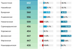 In the primary housing segment, the sharpest year-on-year declines were observed in the Uchtepa (-9.7%), Yunusabad (-8.8%), and Shaykhantakhur (-7.7%) districts.