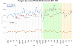 According to an analysis by the Center for Economic Research and Reforms, 23 thousand real estate purchase and sale transactions were registered in July, which is 13.6% more than in June, when their number amounted to 20.2 thousand.