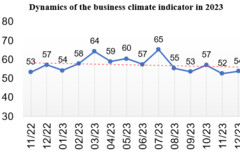 An analysis of the dynamics of business climate indicators showed that the consolidated indicator did not experience sharp fluctuations in 2023, remaining in a positive area. A sharp jump to 65 points occurred in July, and the largest decline in business activity was noted in November – up to 52 points.