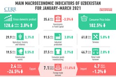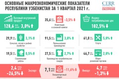 In Uzbekistan, inflation rates continue to slow down, the rise in prices in the first quarter amounted to 2.5%, while in the same period of 2020 - 2.8%. As before, the main driver of inflation is the rise in prices for food products - they increased by 3.1% as opposed to December 2020, however, with a slowdown in comparison with the same period last year (in the first 3 months of 2020 by 4.3%). The growth in prices for non-food products remained at the level of 1.7%, but prices for services grew at a faster pace than in the same period last year - by 2.7% in the first three months of this year against 1.5% in the same period last year.
