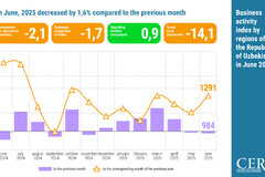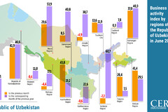 Kashkadarya region demonstrated the highest growth. In total, the Business Activity Index increased in 9 regions in June. Significant growth was recorded in Kashkadarya (+43.8%), Andijan (+41.4%) and Namangan (+37%) regions.
