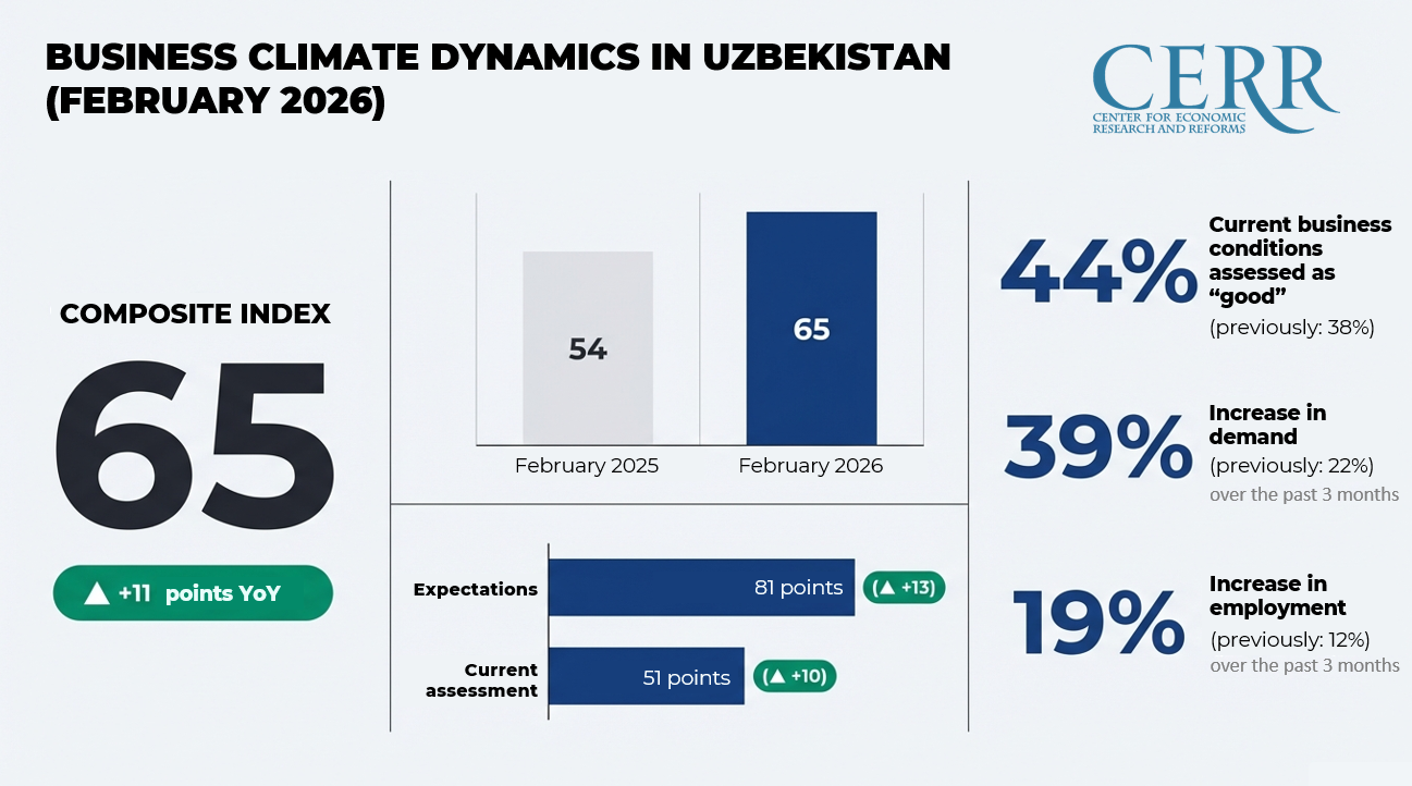 The Center for Economic Research and Reforms (CERR) presented the results of its business climate analysis based on monthly surveys of entrepreneurs across the country.