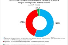 Из общего объема ипотечных кредитов 5,1 трлн. сумов (56,1 %) направлены на приобретение жилых домов, построенных ИК “Қишлоқ қурилиш инвест” и ИК “Ўзшаҳар қурилиш инвест”, 3,7 трлн. сумов (40,8 %) – жилья на первичном рынке (в том числе 1,7 трлн. сумов в рамках нового порядка) и 0,3 трлн. сумов (3,1 %) выделено на покупку жилья на вторычном рынке.