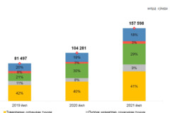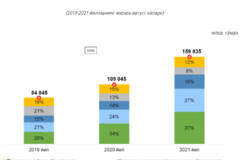 2021 йил январь-август ойларида банк карталарига 178,1 трлн. сўмлик маблағлар келиб тушиб, ушбу даврда банк карталаридаги 58,8 трлн. сўмлик (33 фоиз) маблағлар аҳоли томонидан нақдлаштириб олинган.