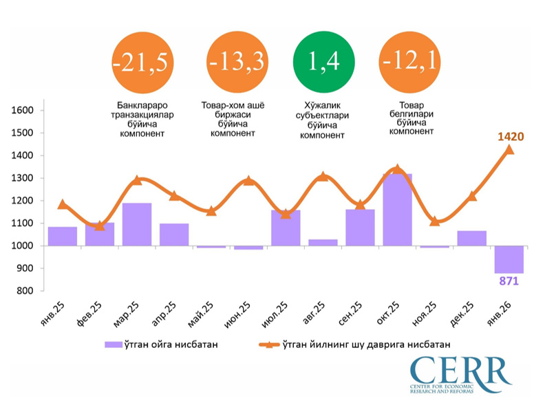 Жорий йилнинг январь ойида ИФИ компонентлари даражасидаги қуйидаги ўзгаришлар кузатилди: