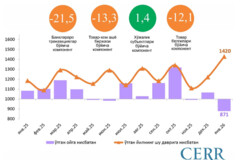 - товар-хом ашё биржасида хом-ашё сотиб олиш жадаллиги 13,3 фоизга камайган;
