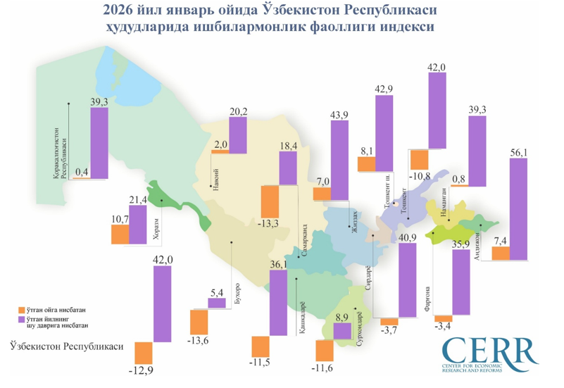 2026 йил январь ойида ИФИ 7 та ҳудудда ўтган ойга нисбатан ўсиши кузатилган.