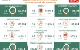 – Ижозат берсангиз, аниқ рақамларга эътибор қаратмоқчиман. Ўтган йилда вилоят ялпи ҳудудий маҳсулоти 106,2 фоизни, саноат маҳсулоти ишлаб чиқариш 100,1 фоизни, хизмат кўрсатиш 119,4 фоизни, чакана савдо 107,6 фоизни, қишлоқ хўжалик маҳсулотлари етиштириш 103,7 фоизни, пудрат ишлари 111,4 фоизни ташкил қилиб, барча йўналишларда ўсиш таъминланди.