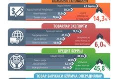 Бундан ташқари, товар-хом ашё биржасидаги фаолиятда ҳам ижобий ўсиш кузатилди. Таҳлил қилинаётган даврда Ўзбекистон Республикаси товар-хом ашё биржасида тузилган битимлар ҳажми 35,8 фоизга ошди.