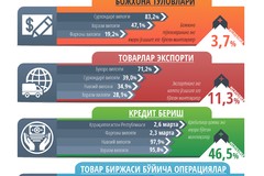 Давлат божхона қўмитаси маълумотларига кўра, йил бошидан буён товарларни экспорт қилиш ҳажми 11,3 фоизга ўсди. Товарлар экспорти ҳажмининг ўсиши Бухоро (71,2%), Сурхондарё (39,0%), Навоий (34,9%), Хоразм (28,1%) вилоятларига тўғри келди.