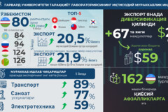 Harvard Growth Lab ҳисоб-китобларига кўра, Ўзбекистон жаҳон бозорида рақобатбардош устунликка эришган 162 турдаги маҳсулотларга эга бўлиб, бу унинг жаҳон иқтисодиётдаги салоҳиятини намоён этади.