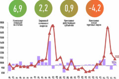 - товар белгилари бўйича компонент 4,2 фоизга камайган.