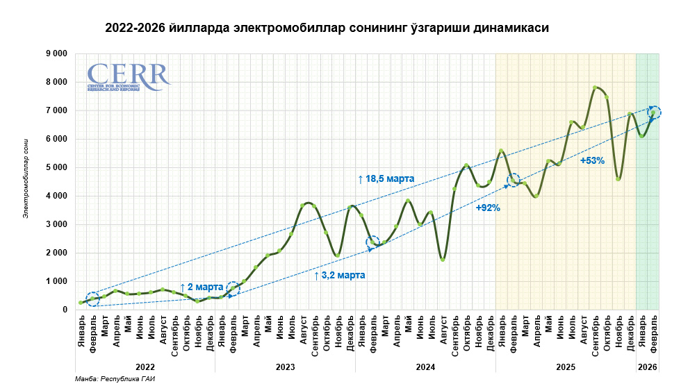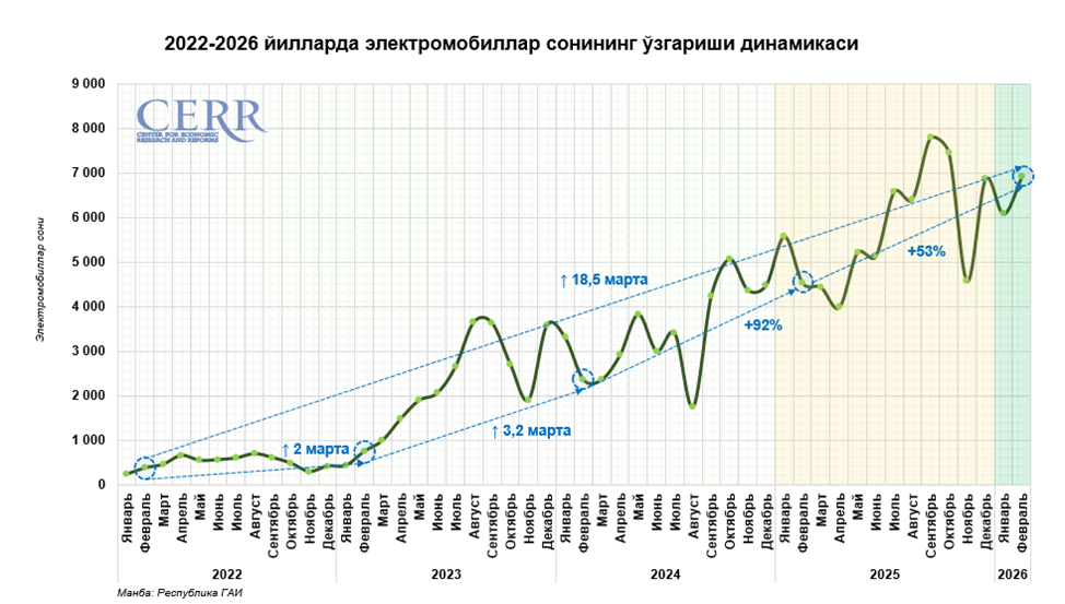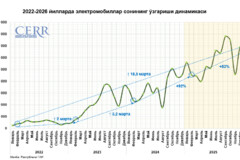 Йиллик ҳисобда электромобиллар савдоси 1,5 баробарга ошди. Бу эса ушбу бозор сегментининг изчил кенгайиб бораётганини кўрсатади.