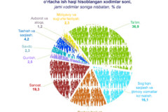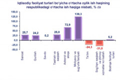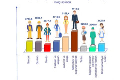 Қайд этилишича, ўртача ойлик иш ҳақининг энг юқори даражаси молиявий ва суғурта иқтисодий фаолиятида — 7 млн 111 минг сўм ёки республика кўрсаткичидан (2 млн 971 минг сўм) 2,4 баробар юқори эканлиги аниқланди.