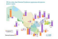 Шу билан бирга, ушбу индекс қолган 7 та ҳудудда камайган бўлиб, бунда Сирдарё (19,4 %), Фарғона (13,1 %), Сурхондарё (13,0 %) ва Жиззах (9,4 %) вилоятларида сежиларли камайиш кузатилган.