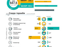 Импорт бўйича асосий ҳамкор давлатлар Хитой (31,2%), Туркия (12,8%), Россия (11,8%), Қозоғистон (6,8%), Қирғизистон (3,6%) давлатлари ҳисобланади.