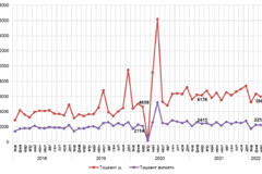 2-расм. Тошкент шаҳри ва Тошкент вилоятида кўчмас мулк олди-сотдиси бўйича тузилган шартномалар сони