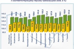 Aҳоли жон бошига умумий даромадларнинг энг юқори реал ўсиши Навоий вилояти (6,0%), Қорақалпоғистон Республикаси (4,0%), Самарқанд (3,7%) ва Тошкент (3,4%) вилоятларида кузатилди.