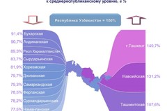 2020 йилнинг ўн икки ой давомида аҳоли жон бошига умумий даромадлар ҳажми Тошкент шаҳрида (23,6 млн сўм) ҳамда Навоий (19,2 млн сўм), Бухоро (14,5 млн сўм), Тошкент (12,6 млн сўм) ва Хоразм (12 млн сўм) вилоятларида ўртача республика даражасидан юқори кўрсаткичлар қайд этилганлиги кузатилди.
