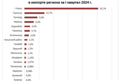 2024 йил I чорагида ҳудуд импорти 2023 йилнинг мос даврига нисбатан 11,6 фоизга камайди ва 48,8 млн. долларни ташкил этди.