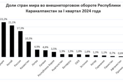 2024 йилнинг I чорагида Қорақалпоғистон Республикасининг умумий ташқи савдо айланмаси қарийб 138,8 миллион АҚШ долларини ташкил этди ва бу 2023 йилнинг мос даврига нисбатан 12,2 фоизга кўпайди.