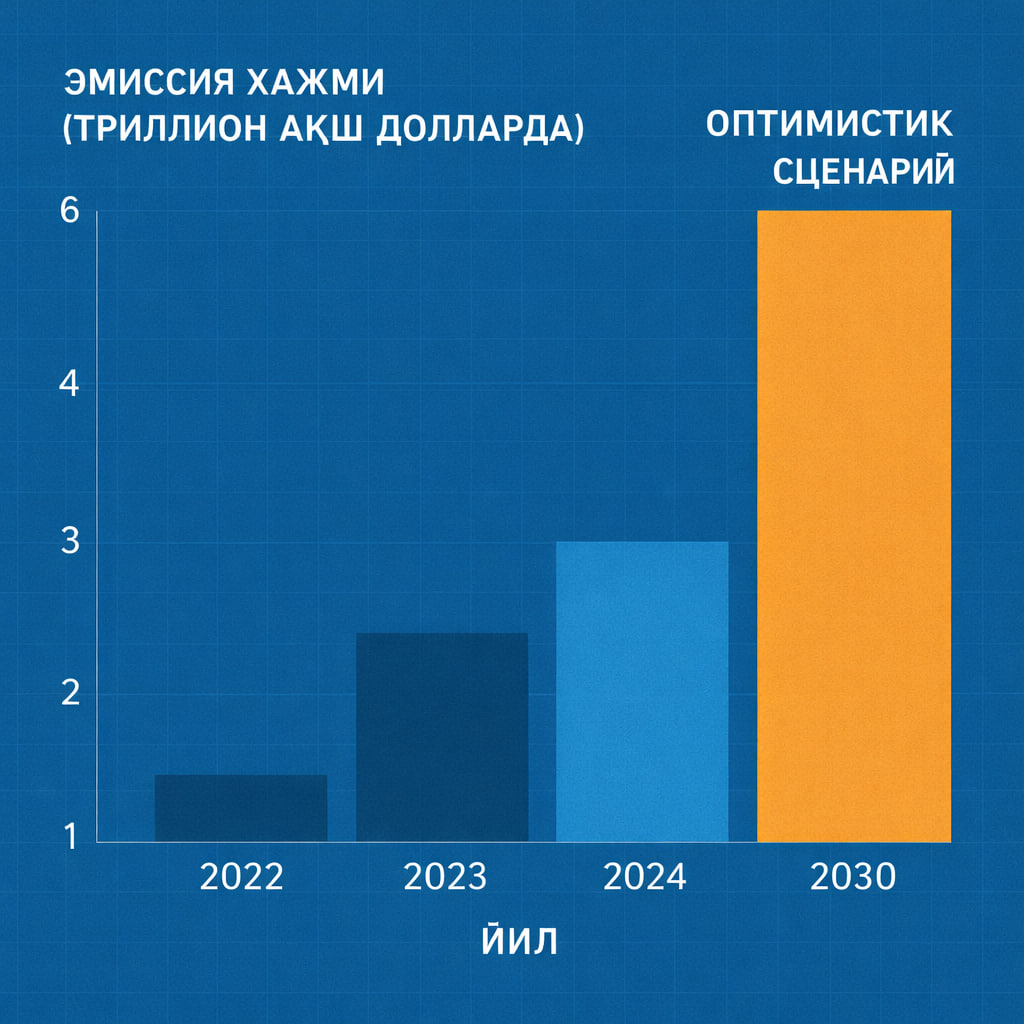 АҚШда ҳамда халқаро миқёсда бозорнинг тез суръатларда ўсиши ва янги лойиҳалар эълон қилиниши фонида стейблкоинлар бозори ҳажми бўйича прогнозлар юқори томонга қайта кўриб чиқилди. 2030 йилга келиб стейблкоинлар эмиссияси базавий сценарийда 1,9 трлн АҚШ долларигача (аввал 1,6 трлн) етиши, оптимистик сценарийда эса 4 трлн АҚШ долларигача (аввал 3,7 трлн) ошиши кутилмоқда. Тарихий динамика ва янги прогнозлар ушбу сегментда экспоненциал ўсиш салоҳияти мавжудлигини яққол намоён қилади.
