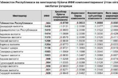 | Андижон вилояти | ↑1295 | ↑1.3338 | ↑1.4677 | ↓0.9719 | ↓0.9000 |