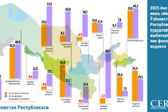 2025 йил июнь ойида барча турдаги фаолият юритаётган хўжалик юритувчи субъектлар сони ўтган ойга (481 734 бирлик) нисбатан 7 866 бирликка ортиб, 489 600 бирликни ташкил этган.