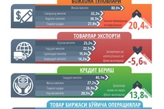 Таҳлил қилинаётган даврда Ўзбекистон Республика товар-хомашё биржасида тузилган битимлар ҳажми 4,4%га камайди. Шу билан бирга, биржа фаолиятининг ўсиши Сирдарё (9,8%) ва Андижон (5,8%) вилоятларида, Қорақалпоғистон Республикасида (9,2) ва Тошкент шаҳрида (3,1%) қайд этилди.