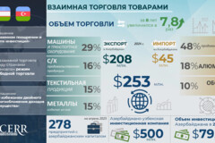Экспертом также отмечена положительная динамика торгово-экономических отношений между Узбекистаном и Азербайджаном в последние годы. Так, товарооборот за 8 лет увеличился в 7,8 раза, достигнув $253 млн в 2024 году. Экспорт Узбекистана вырос до $208 млн, при этом основными позициями стали машины, продовольствие, текстиль и металлы. Импорт из Азербайджана составил $45 млн, с преобладанием сельхозпродукции и алюминия.