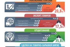 По итогам анализа внешнеэкономических показателей экспорт товаров вырос на 17,5%. Наиболее значительный рост экспортных поставок отмечен в Сурхандарьинской – почти на 80%, а также Самаркандской областях – на 30%.