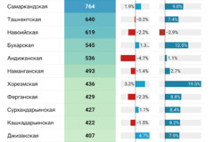 При этом значительный рост стоимости вторички отмечен в Хорезмской – на 19,5%, Бухарской – на 12,5% и Самаркандской – на 10% областях.