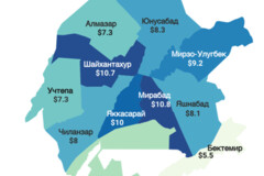 Наибольшее снижение отмечено в Мирзо-Улугбекском на 2,5% и Юнусабадском районах на 2,4%. Повышение цен отмечено лишь в двух районах – в Яккасарайском на 1,1% и Шайхантахурском – на 0,3% районах.