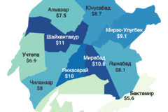 Высокие цены на аренду сохраняются центральных районах, таких как Мирабад, Шайхантахур и Яккасарай, где в среднем аренда жилья составляет $10-11 за квадратный метр.