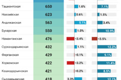 В то время как в семи регионах наблюдается снижение стоимости вторичного жилья, наибольшее уменьшение зафиксировано в Наманганской – на 3,4%, Хорезмской – на 3,2% и Самаркандской областях – на 2,5%.
