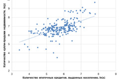 Результаты анализа показывают, что cуществует значительная корреляция между ипотечным кредитованием и продажами недвижимости. Увеличение количества ипотечных кредитов на 10 % приводит к увеличению продаж недвижимости в среднем на 6,7 %.