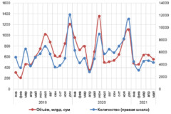 В июне т.г. количество заключенных в стране договоров на недвижимость составило 21,5 тыс., что на 16,8% больше, чем в мае, когда был зафиксирован незначительный спад по сравнению с апрелем. По сравнению с июнем 2019 года (14,3 тыс.) число заключенных договоров на недвижимость выросло на 50,6%.