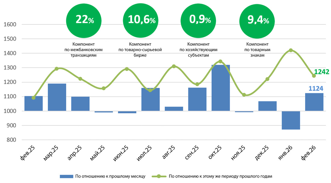 В феврале 2026 года компонент по товарным знакам составил 1,0641 единицы, увеличившись на 9,4% по сравнению с предыдущим месяцем.