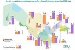 В сентябре Индекс деловой активности по 11 регионам увеличился по сравнению с предыдущим месяцем. В частности, Джизакской (38,4%), Сырдарьинской (31,9%), Кашкадарьинской (21,6%), Наманганской (16,1%), Ташкентской (14,5%) и Бухарской (10,5%) областях наблюдался значительный рост (рис.2).